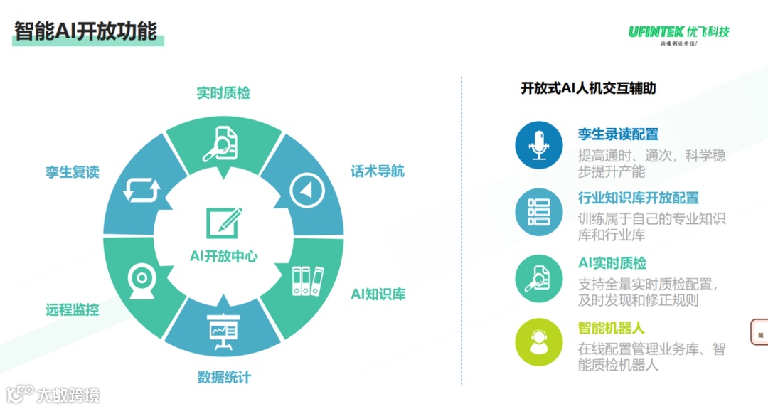 。使用了ASR(自动语音识别)、NLP(自然语言处理)技术,将客户与TSR的对话进行实时语音转文本,根据客户的提问或者异议实时给出对应答案,让TSR面对客户的问题或异议不再慌张,能够从容应对,从而提高成单率。