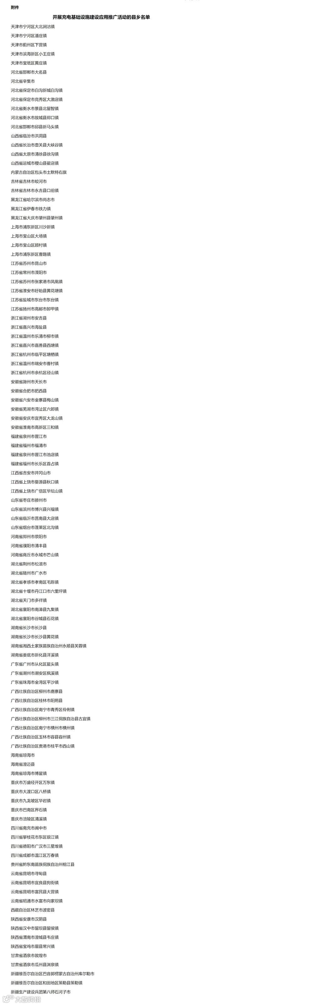 具体来看,经各省(自治区、直辖市)牵头负责充电设施管理的部门申报,国家能源局委托第三方机构组织专家评审,决定选取河北省邯郸市大名县等33个县(县级市、县、自治县、旗)、天津市宁河区大北涧沽镇等74个乡(镇)开展充电基础设施建设应用推广活动。
