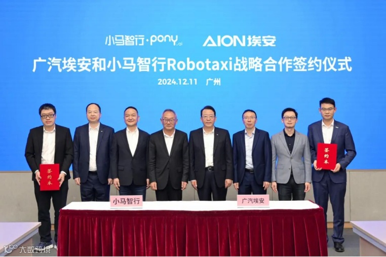 中工汽车网讯,12月11日,小马智行广汽埃安宣布达成战略合作,广汽集团总经理冯兴亚,小马智行联合创始人、CEO彭军等出席,双方将进一步联合打造具备商业运营竞争力的Robotaxi规模化量产车型,共同推动全无人Robotaxi商业化落地。