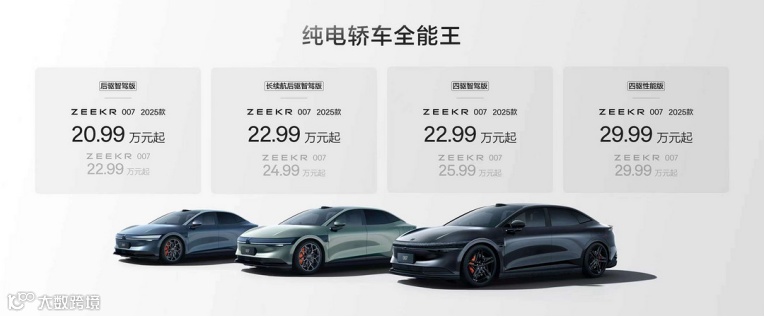 8月13日,极氪汽车发布2025款极氪007001车型。虽两车起售价保持不变,但均对车辆进行配置若干升级。极氪007主要升级入门款的智驾以及电池;极氪001则大幅升级智驾。