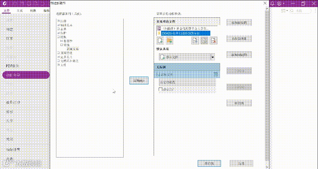 2.打开创建新动作对话框后,你可以在“要处理的文件”中添加文件或文件夹,将你所有需要处理的文件添加进来,并对文件进行上移、下移、删除等操作。