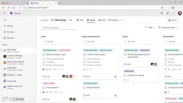 用户可以访问网址,使用新的网页版 Planner,并管理所有与 Microsoft To Do、Microsoft Planner 和 Microsoft Project 相关的工作。