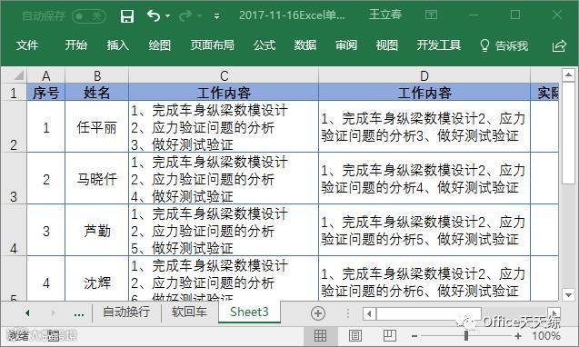 2、现在看看,所有数据都换行了,同时也行高自动调整。