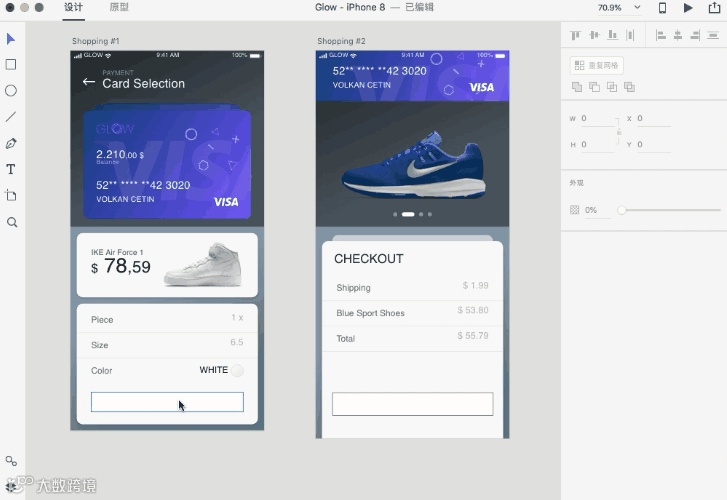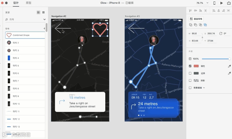 符号是用户体验设计中最被看重元素之一,也是经常需要修改的元素。在XD中,相同的符号彼此都是相连接的,只要你更新了其中一个符号,这种更新也会光速同步到其他符号中。操作起来也很简单~