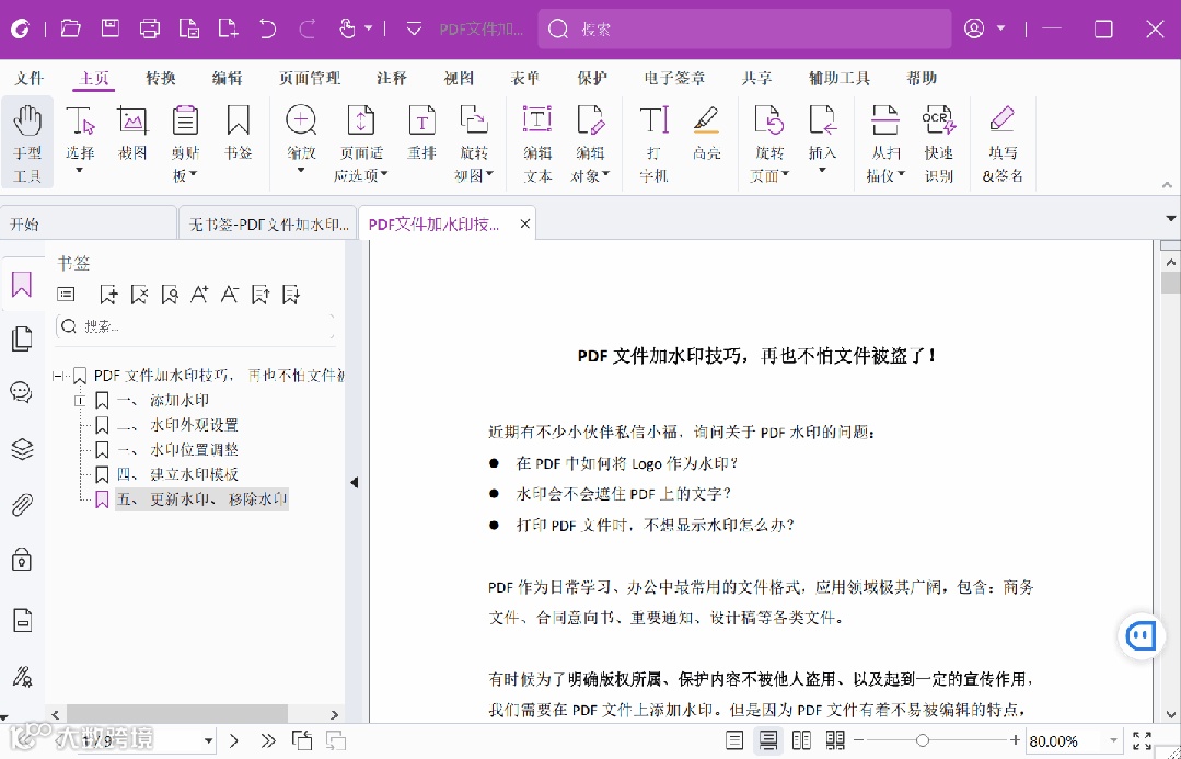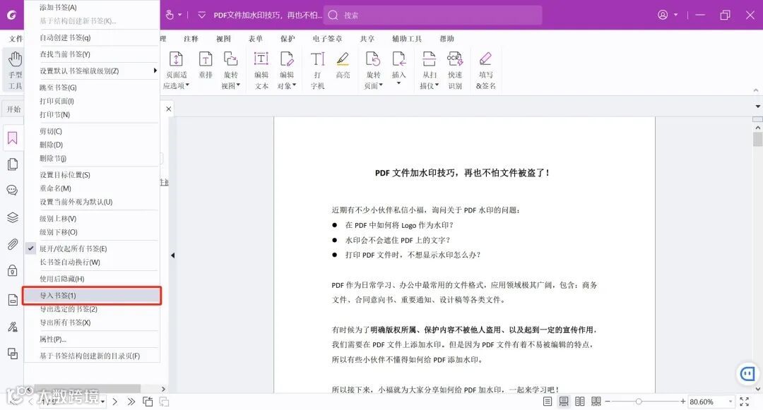 (1)打开要导入书签的 PDF 文档;