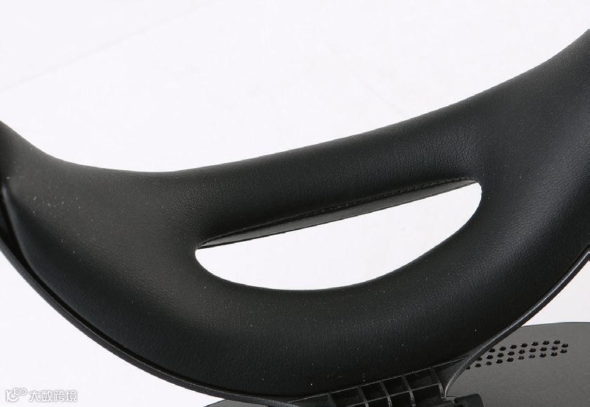 在佩戴方式方面,3Glasses蓝珀S2消费者版采用了类似于PS VR的固定式佩戴方式,在人体的额头和后脑勺接触的部分均采用了皮革包裹的海绵体,在保证了舒适性的同时也不会沾染污渍。同时,在头带的后部蓝珀S2还搭配有一个旋钮,顺时针旋转为缩紧,逆时针旋转则为放松。
