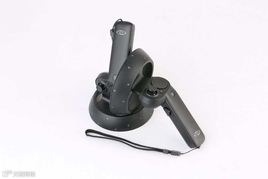 除了头显部分外,为了让用户拥有更好的交互体验,3Glasses蓝珀S2消费者版还提供了两个无线蓝牙交互手柄。它的手柄与Oculus Touch有些类似,不同的是蓝珀S2的手柄前面是一个圆形。同时,在手柄端还设计有触控板和摇杆,开关键上设计有微软Windows徽标,让人一目了然这是一款微软平台的设备。