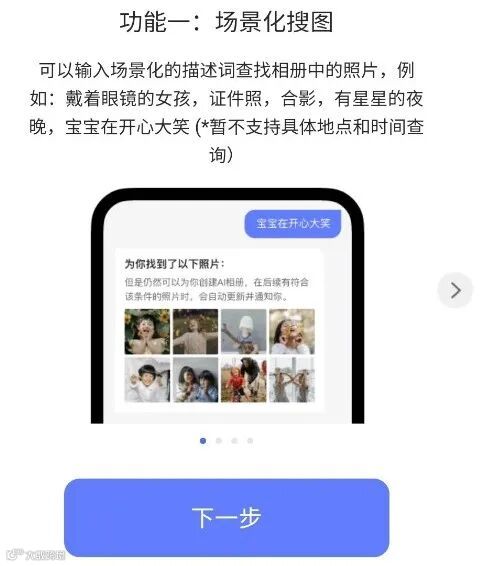 从阿里云盘 App 获悉,该功能需要详细描述照片的画面,如元素、画质、情绪、人物、颜色等细节,并将关键词组合在一起,将在用户所有的云端相册照片中进行查找。阿里云盘提醒用户:“单独的短语可能无法得到准确的搜索结果”。