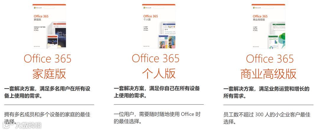 Office 365 主要分为 3 个版本