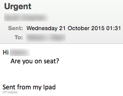 然后,诈骗者使用一些非常简单的技巧来避免引起怀疑。电子邮件通常会说 CEO 外出中或者开会中,因此无法接电话。许多这些电子邮件后面都会附上“发送自我的 iPad”,这可以强化发件人正在外出的情况或者成为邮件中英语表述不佳的借口。