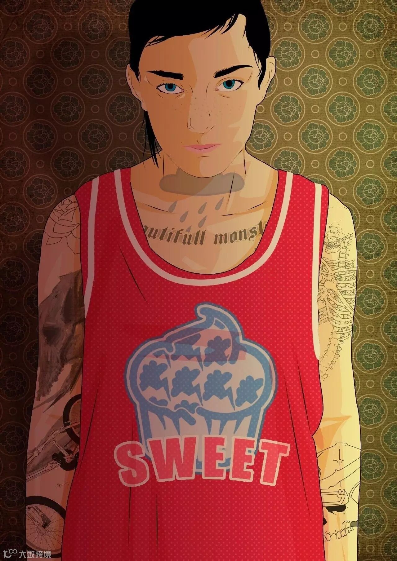 第三步:新建图层,命名为skin lines,开始做脸上的修饰。把刚刚勾勒的形状图层关闭。(这一步,用手绘板更便捷)