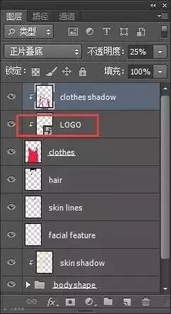 第九步:将素材里“LOGO”拖入PS里,放在clothes shadow下面。