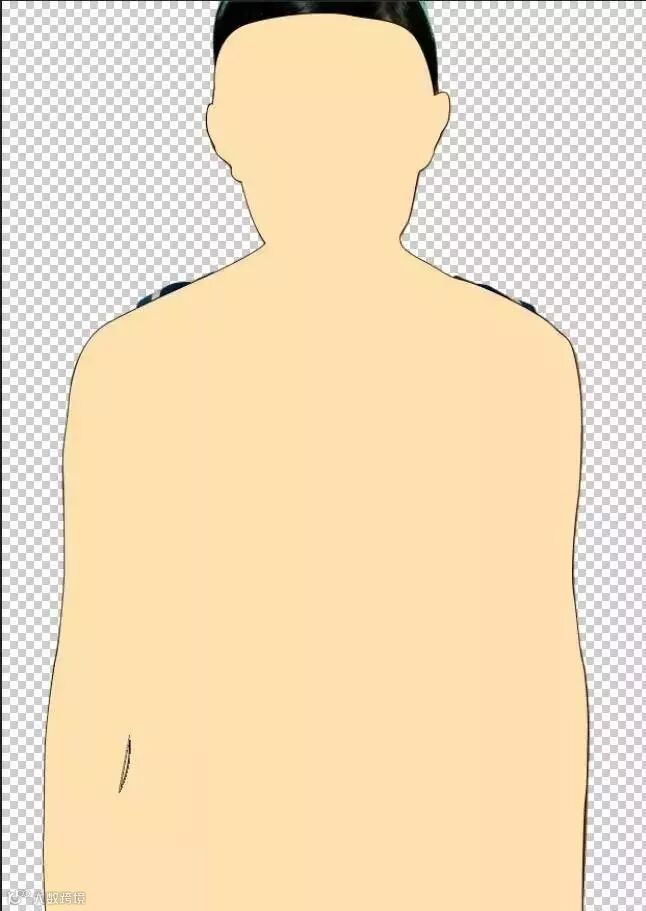 新建一个图层,命名为skin shadow,放在body shape之上。假设光是从右上角打过来,然后试想以下暗面会在哪些地方出现。按住ctrl,点击body shape,让skin shadow只作用于body shape。