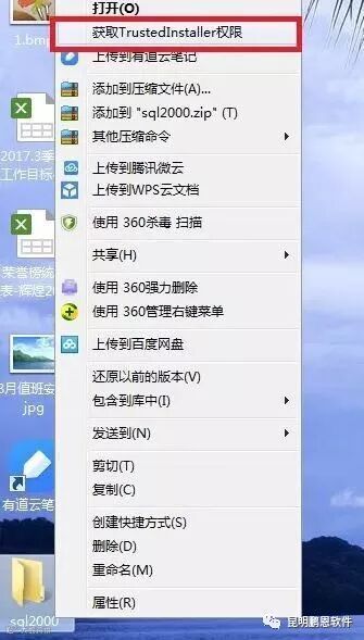选择数据库安装包所在的文件夹和C:\Windows\目录下的SysWOW64点右键获取TrustedInstaller权限