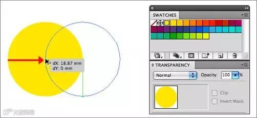 首先选椭圆工具(L),并按住Shift键画一个正圆出来,并填充为亮黄色(从色板面板中选择)。确定你打开了智能参考线(视图—智能参考线或者快捷键Ctrl+U)。同时我建议打开对齐点(视图—对齐点)。