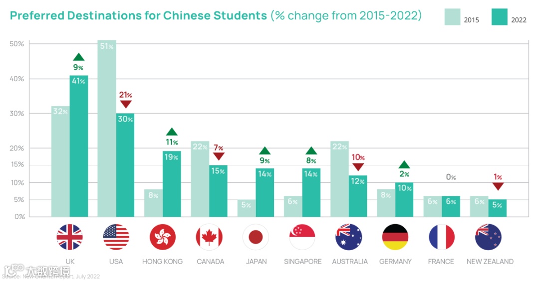 📉 Political turbulence and violence have knocked USA off the top spot. The country once captured 51% of Chinese students, which has now fallen to just 30%.