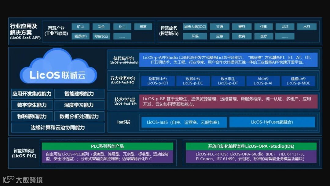 顺应信息化、数字化发展趋势,昆明联诚科技股份有限公司深耕工业互联网领域,聚焦国产自主可控的工业控制器(PLC)和工业云软件行业,基于在物联网、云计算、大数据、人工智能、区块链等核心技术领域的持续研发,打造了自主可控的“联诚云LicOS”核心技术平台。以“联诚云LicOS”为基础平台,联诚科技已成功打造了矿山、冶金、化工、交通、水务、烟草、司法、城市IOC等行业大量的工业互联网平台应用解决方案和项目案例。