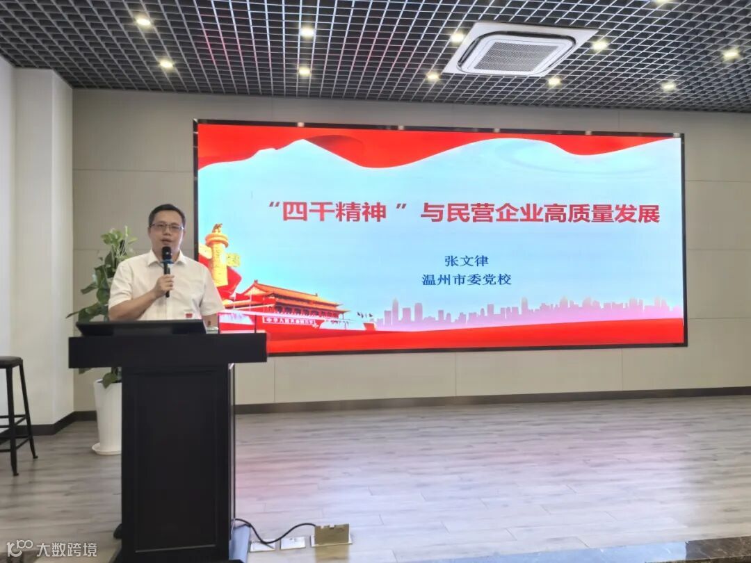 活动特邀温州市委党校经济学教研部主任张文律副教授进行专题授课。张文律副教授以《四千精神与民营企业高质量发展》为题,从“四千精神”的起源、内涵及现实价值出发,阐述了其在民营企业高质量发展中的重要作用,并详细分析了民营企业发展面临的挑战,从优化外部环境与强化内部支撑两个维度,为民营企业实现高质量发展提出建议,获得了在场人员的广泛共鸣。