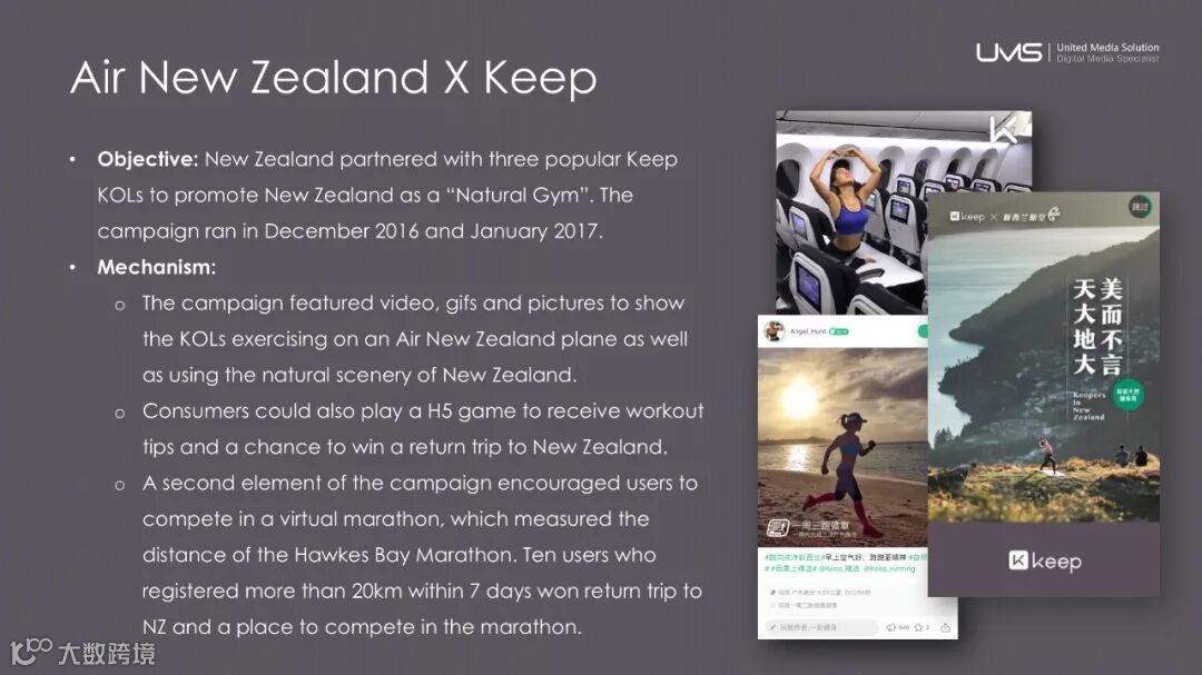 “Air New Zealand used Keep to promote flights to NZ by positioning the country as a natural gym, full of fitness challenges and opportunities for Keep users. This is a great example of how brands can think outside the box to align their brands with the health and wellness conscious people on Keep,” says Miao.