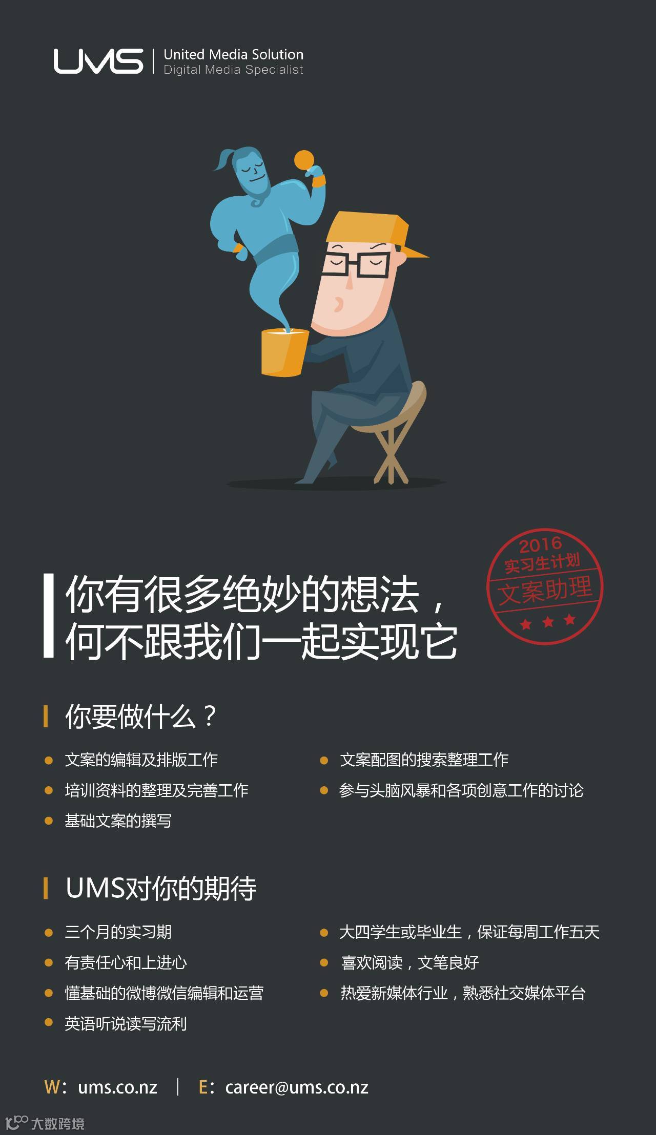 我们将首次开启“UMS实习生培养计划”!