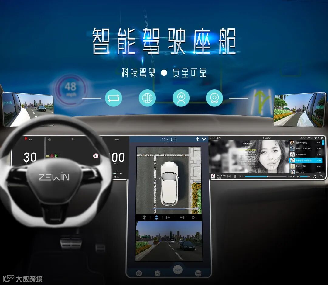 图为大连致胜基于华为鸿蒙系统和麒麟芯片研发的新一代智能座舱系统