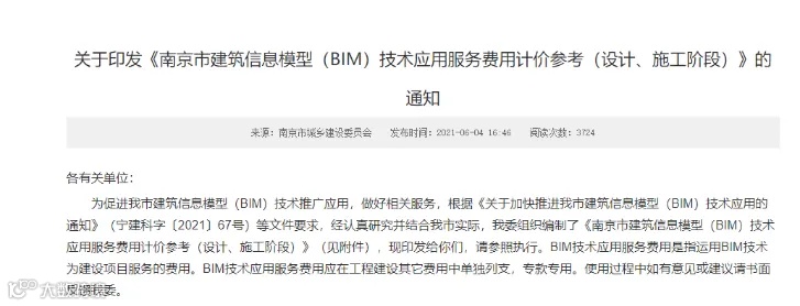 2020年10月23日安徽省住房和城乡建设厅关于印发《安徽省建筑信息模型(BIM)技术服务计费参考依据》的通知。