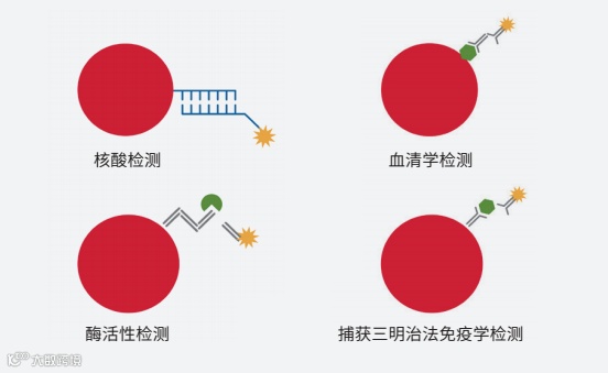 xMAP微球可以与诸如抗原、抗体、寡核苷酸、酶底物、修饰过的多糖分子、受体等靶标特异性分子偶联。样品中待测分析物被靶标特异性分子捕获后,一个荧光报告分子被引入用以完成每个微球表面的反应。