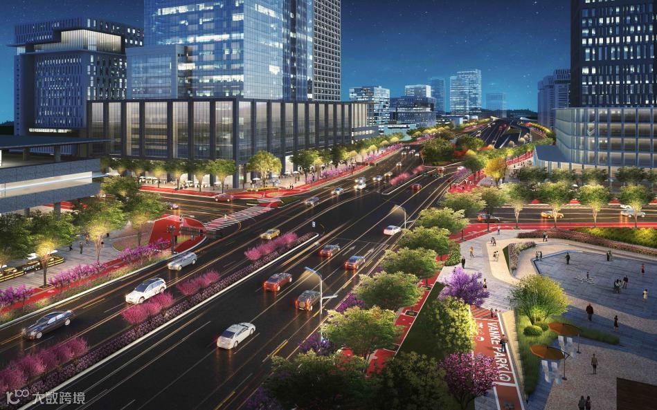 重庆东站铁路综合交通枢纽高铁经济区基础设施工程(开成路、兴塘路、东侧集散通道一期)——开成路站前段夜景效果图