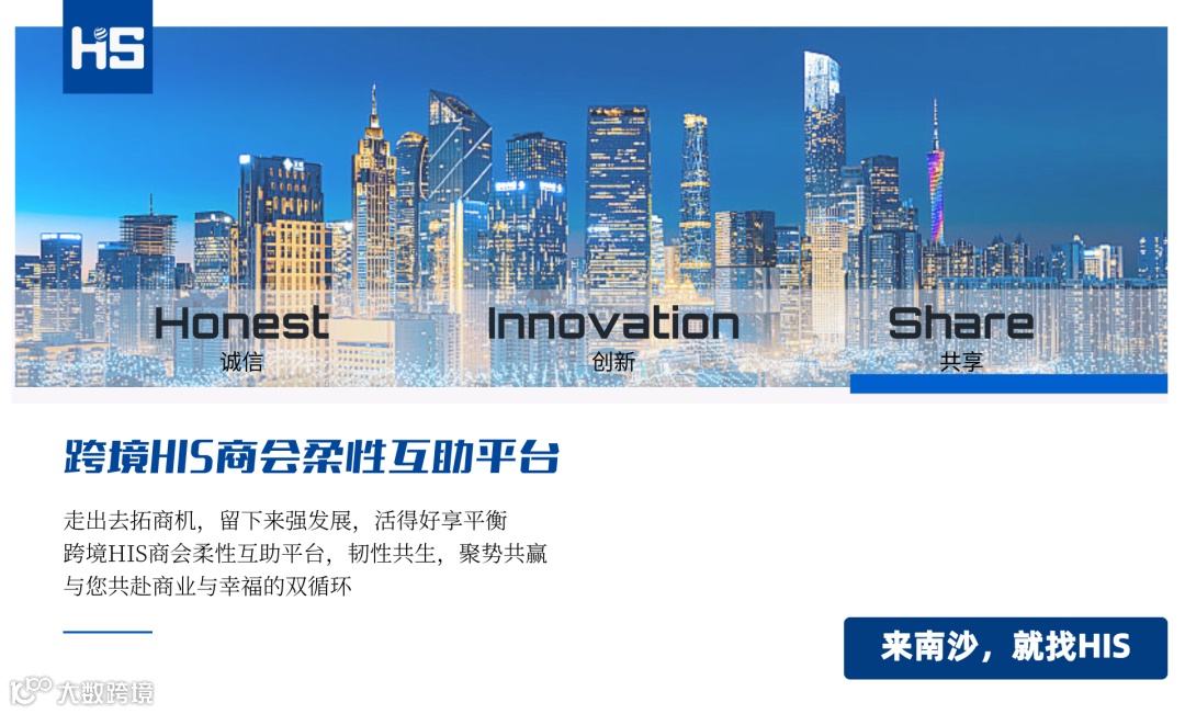 HIS是践行南沙方案的大湾区专业创新服务平台,依托海外、本地商协会组织,以BNI模式推动经济合作和社会互助,以信用评价为基础的法律、心理、财税、健康、征信等行业专家护航,为企业提供从企业宣传、供需链通、创投转型、认知提升、拓脉融通、压力疏导、家庭关怀的全链路赋能,提供本土深耕与跨境出海布局的双轨解决方案,服务于南沙企业走出去战略,助力本土企业抱团融通、赋能来南沙创业者从0到1孵化,推动正向人群价值观的裂变,构建反脆弱生态圈,争创粤港澳融合公益新品牌。