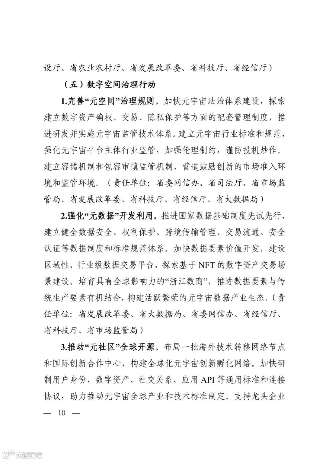 1.完善“元空间”治理规则。加快元宇宙法治体系建设,探索建立数字资产确权、交易、隐私保护等方面的配套管理制度,推进研发并实施元宇宙监管技术体系。建立元宇宙行业标准和规范,强化元宇宙平台主体行业监管,加强伦理制约,谨防投机炒作。建立容错机制和包容审慎监管机制,营造鼓励创新的市场准入环境和监管环境。(责任单位:省委网信办、省司法厅、省市场监管局、省发展改革委、省科技厅、省经信厅、省大数据局)
