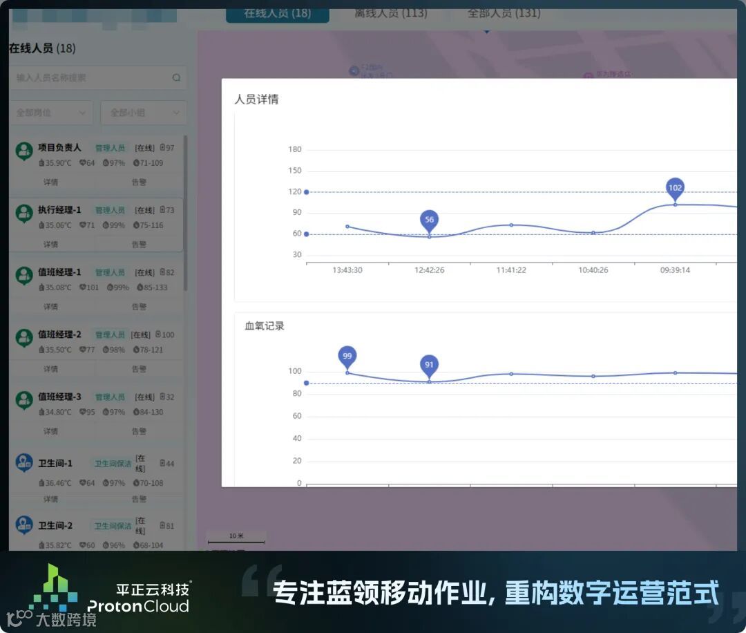 本项目主要工作任务是对机场内外的全面保洁服务,由于保洁工作人员年龄普遍偏大,客户希望管理保洁在岗情况的同时,对保洁工作人员生理指标进行监控,提前预防异常情况发生的同时更好的进行针对老龄化工作人员的无感化管理。