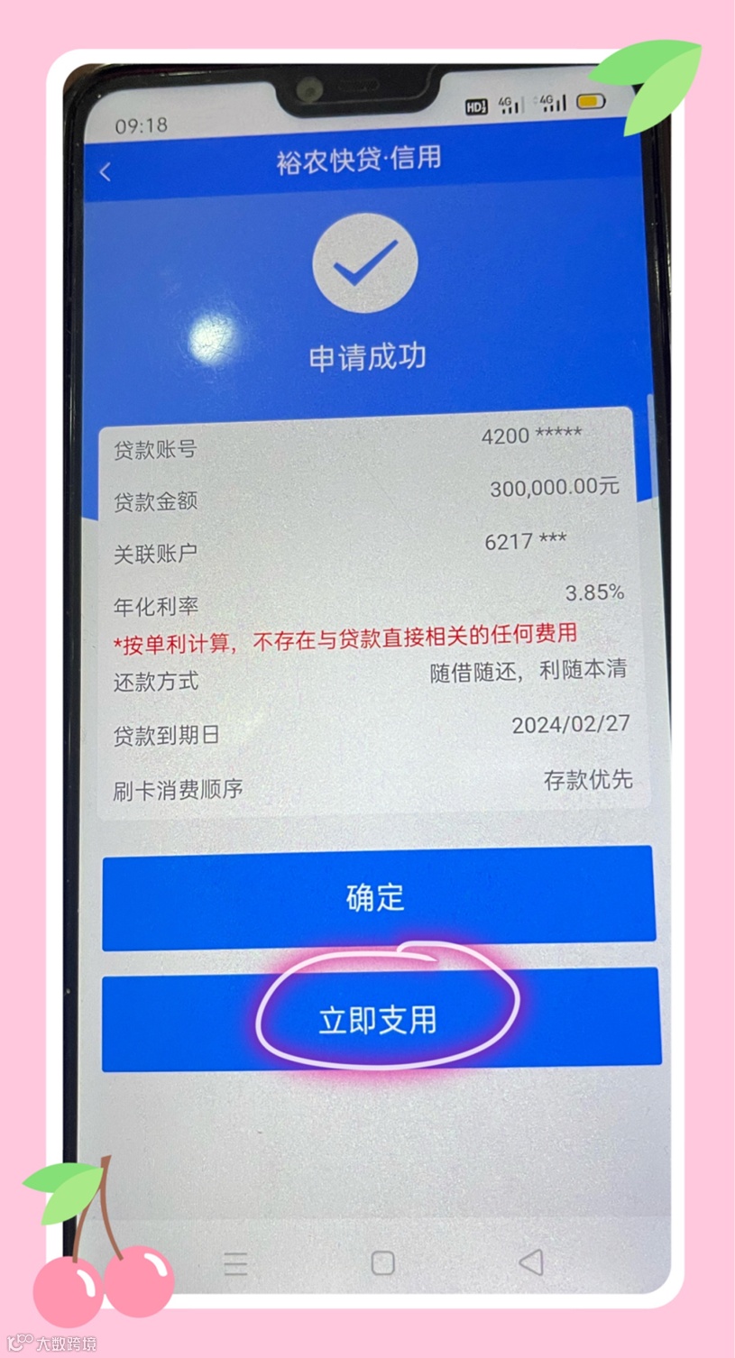 放款时效:线上申请,当天出结果