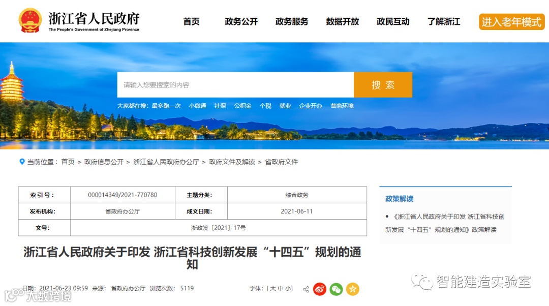 浙江省人民政府关于印发《浙江省科技创新发展“十四五”规划的通知》
