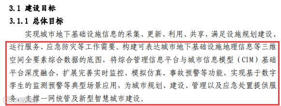 • 5.依托城市信息模型(CIM)基础平台,建立可感知、实时动态、虚实交互的城市地下基础设施数字孪生融合应用。