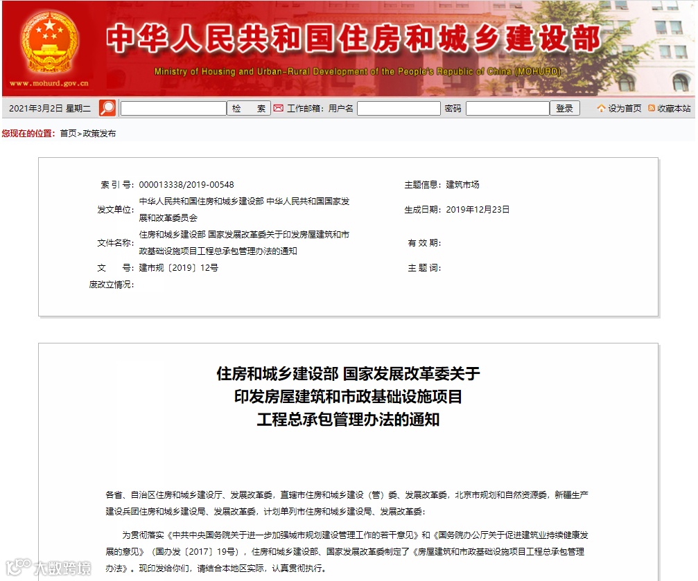 住房和城乡建设部《房屋建筑和市政基础设施项目工程总承包管理办法》