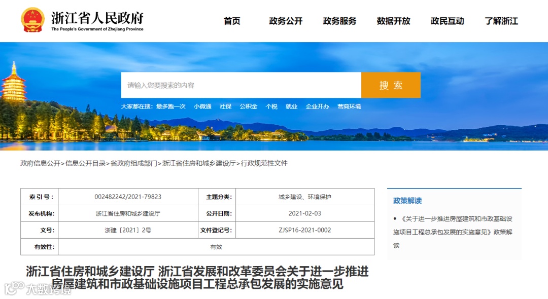 浙江省《关于进一步推进房屋建筑和市政基础设施项目工程总承包发展的实施意见》