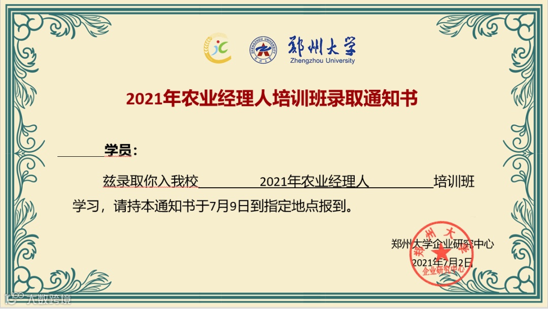 录取通知书将于近日发放,请各位学员按时查收。衷心祝愿各位录取学员经过此次培训能够提升自我,成为一名优秀的农业经理人。