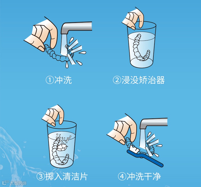 对于隐形保持器,可用常温水清洗。用牙刷将保持器内外的口腔唾液及食物残渣轻轻刷去,推荐使用小头软毛牙刷。配合使用清洁片或超声波清洗器,清洗效果更佳。