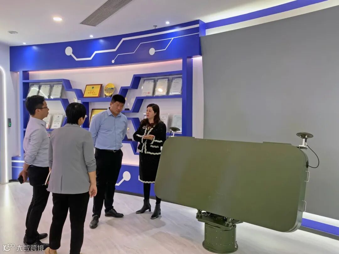 在我司董事长唐董的带领下,各位领导先后参观了展厅与办公区域。唐董向各位领导详细地介绍了公司的发展历程、产品技术和核心竞争力,以及取得的“武器装备质量管理体系认证”与其他各项知识产权认证等情况。孟总对我司现有主打低空预警、场面监视雷达以及(FOD)机场跑道异物探测系统很有兴趣,希望我司能够提供几台设备给香洲区使用。