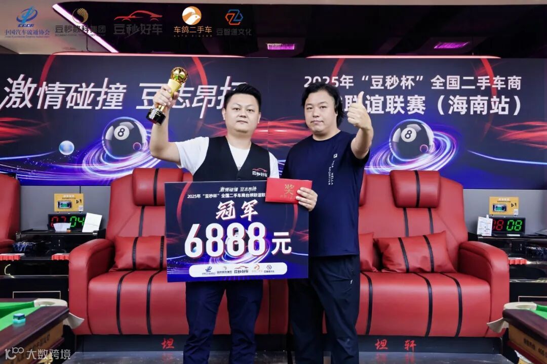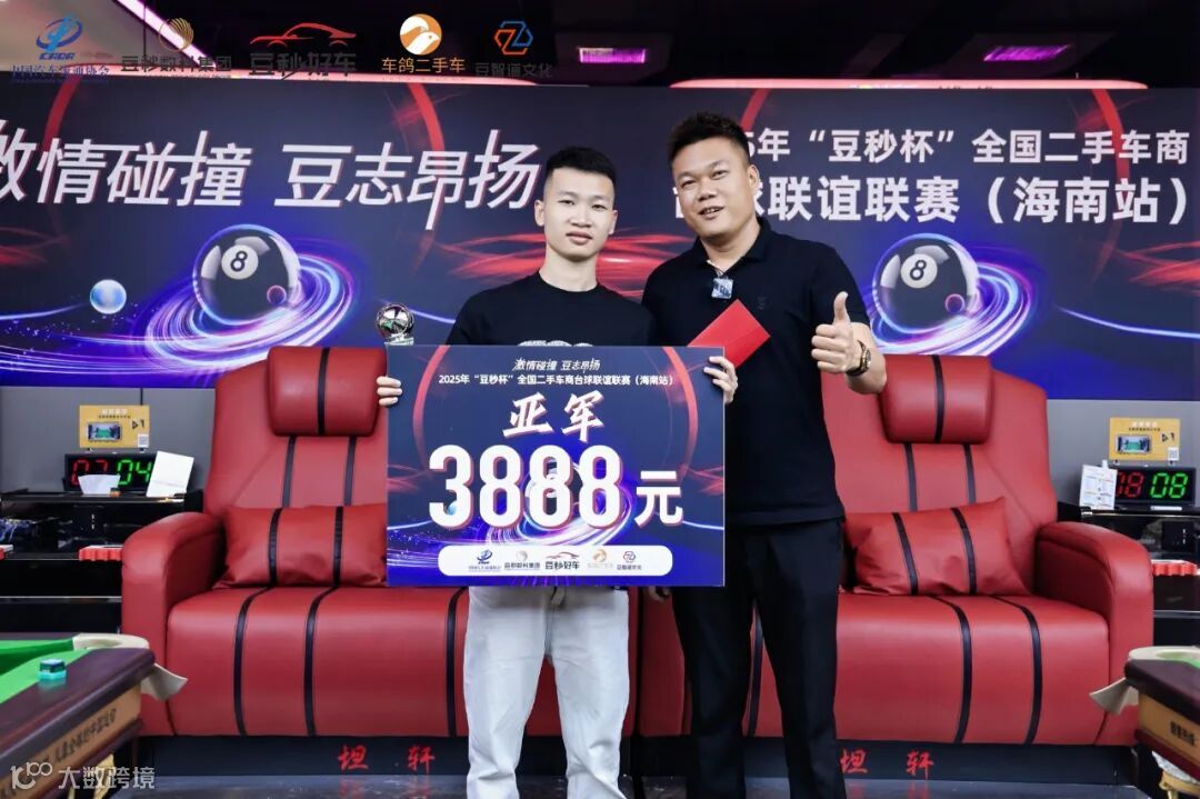 本次赛事由中国汽车流通协会与豆秒数科集团联合主办,豆秒好车海南公司倾力承办。豆秒好车南方大区总经理、海南公司总经理伏云飞,海南省汽车流通行业协会秘书长张燕,爱能(海南)新能源科技集团有限公司负责人陈思沛,海南龙哥秒车汽车服务有限公司负责人唐文龙,海南豆秒汽车服务有限公司副总经理张建伟,海南省台球协会副会长龚晨辉等领导嘉宾出席现场,与现场汽车经销商代表及豆秒好车海南团队共同见证赛事盛况。