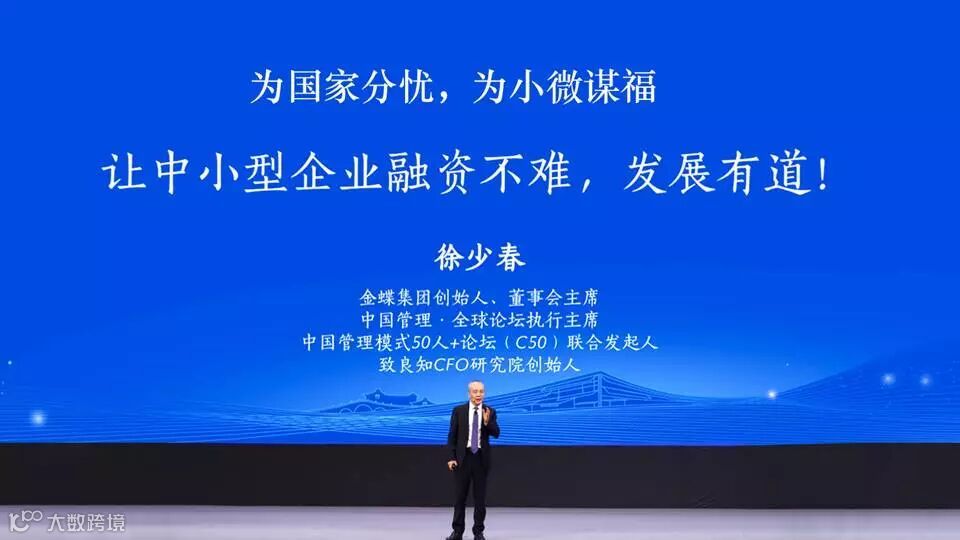 金蝶集团创始人、董事会主席徐少春曾经发出一个宏愿,提出“为国家分忧,为小微谋福”的决心,让中小型企业融资不难,发展有道。这个责任在我们这个版块,聚焦小微就金融创新蓝海,为广大金融机构的小伟金融插上科技的翅膀使我们当仁不让的使命,当然要成功还是靠大家,希望我们齐心协力共同努力,一起实现这个梦想,谢谢大家。