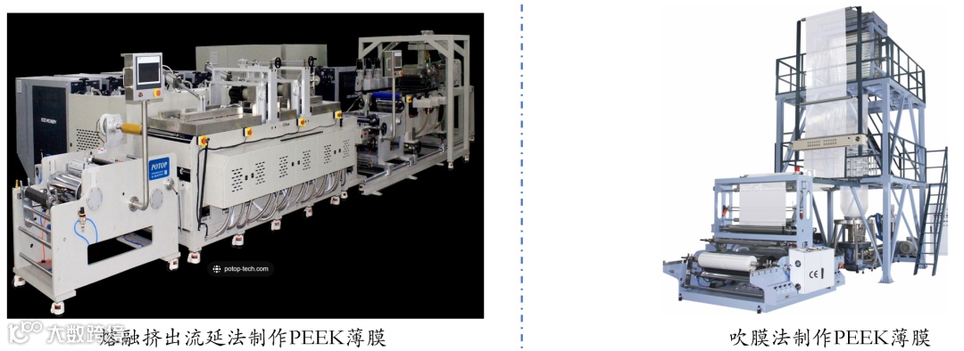 吹膜法:PEEK薄膜也可以采用挤出吹塑法制备,可得到薄的薄膜,但难以得到宽幅薄膜。