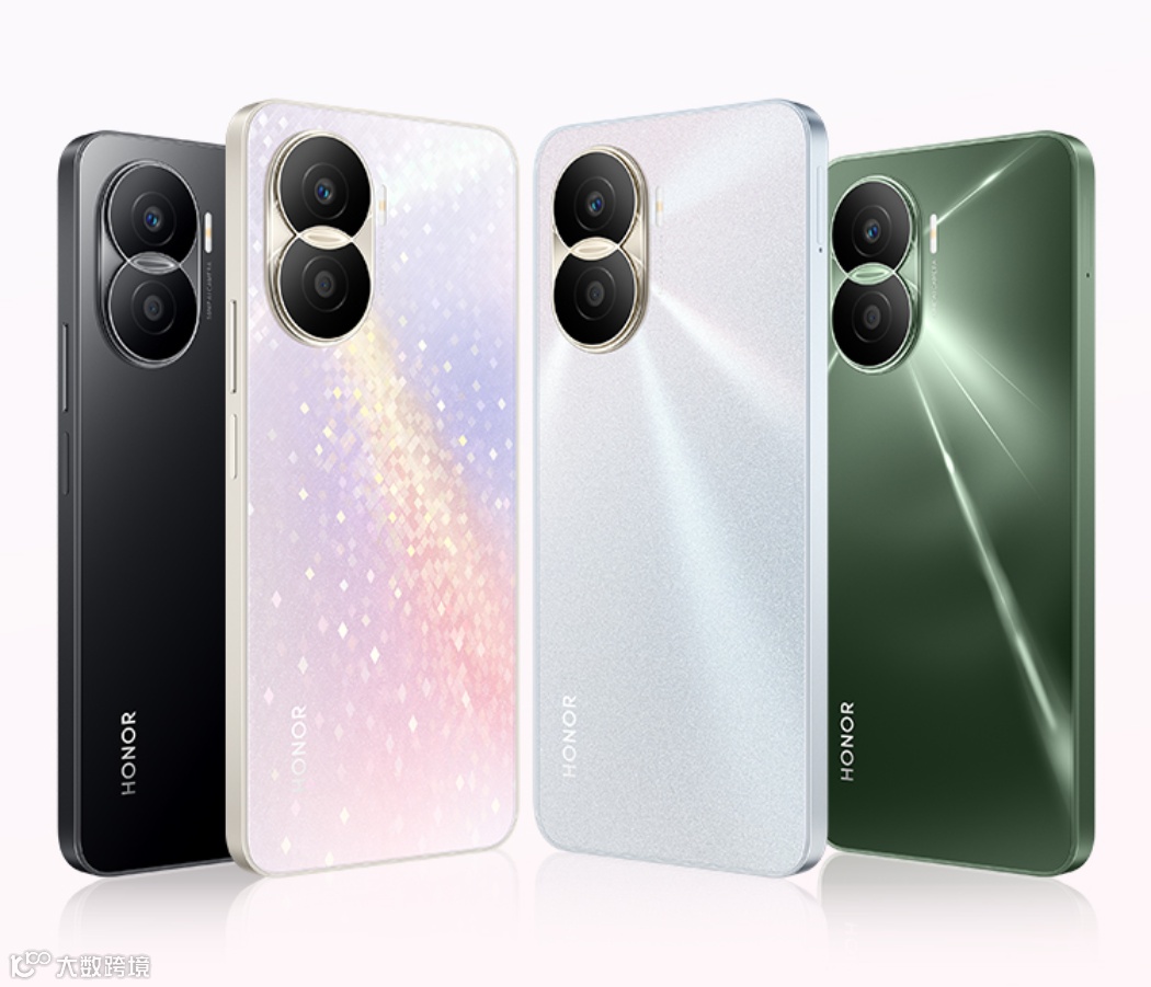 机身背面,荣耀X40i使用了类似涂布液晶工艺,摸起来有细腻的磨砂质感,而且还能够很好地避免沾染指纹。同时,星梦银配色的荣耀X40i也是“五彩斑斓”,在不同角度、不同光线下会呈现出不同色彩,颇有几分魔幻色彩。