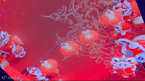 考虑到天幕的体量特征,我们为天幕设定的场景是张灯结彩的新春兔子游园会,长长的舞龙队伍在蜿蜒的天幕上穿梭,热闹喜庆的场景十分吸睛。