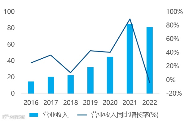 图:2018-2022年公司营收(亿元)及增速(%)