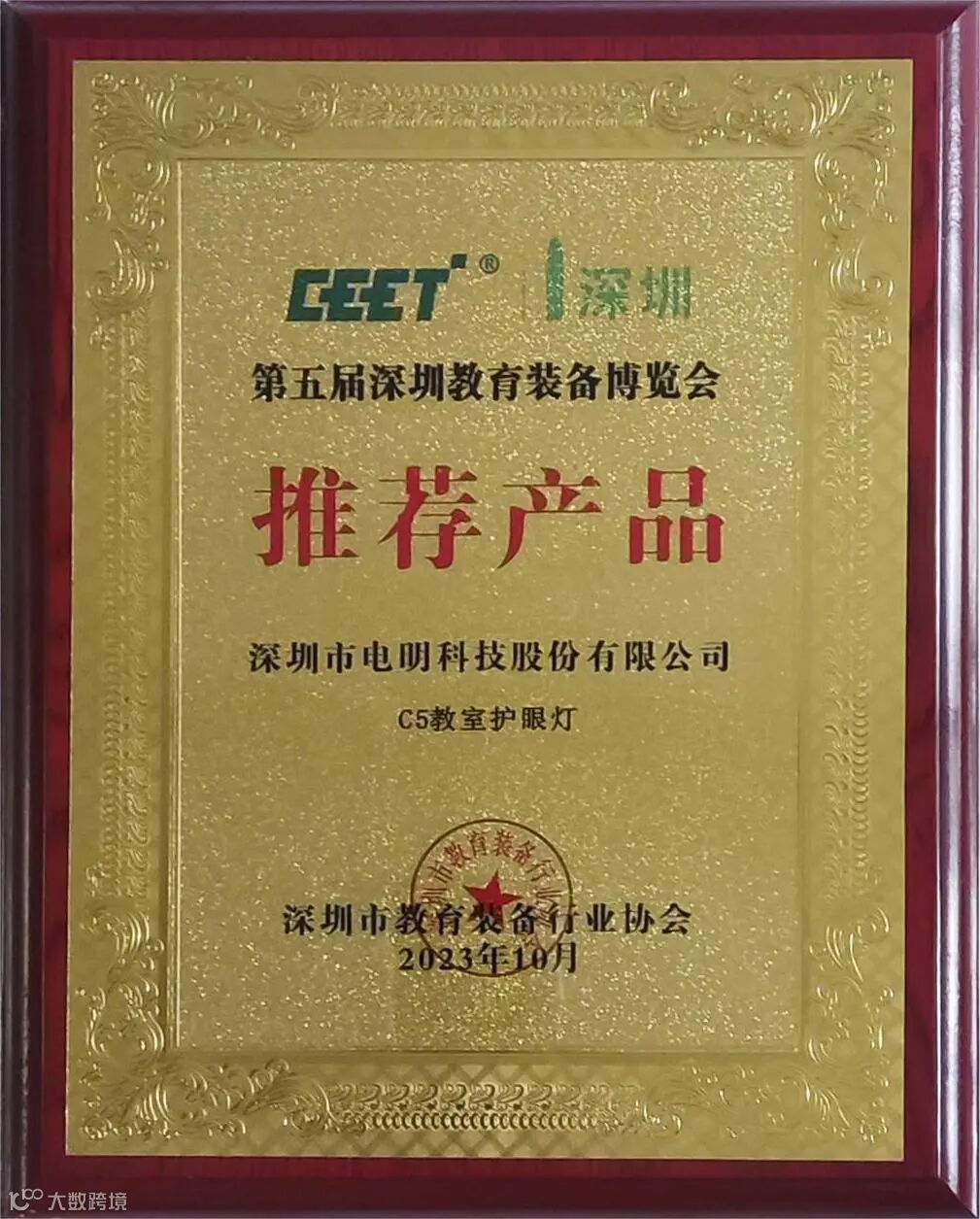 2023年10月,深圳市教育装备行业协会发布2023年度推荐产品,深圳市电明科技股份有限公司自主研发生产的“C5系列教室护眼灯”,从众多教具、学具、文具、器材、设施、仪器、软件、用品等教育装备厂家中脱颖而出成功入选2023年度推荐产品和第五届深圳教育装备博览会推荐产品。最终评选出优秀产品,推荐给相关企业、单位、部门在装备采购时参考选用。