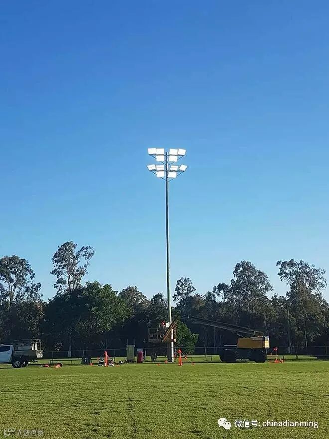 电明科技在澳洲足球场照明改造工程顺利交付,以480W的P3高杆灯来替换原来1000W的传统灯具。