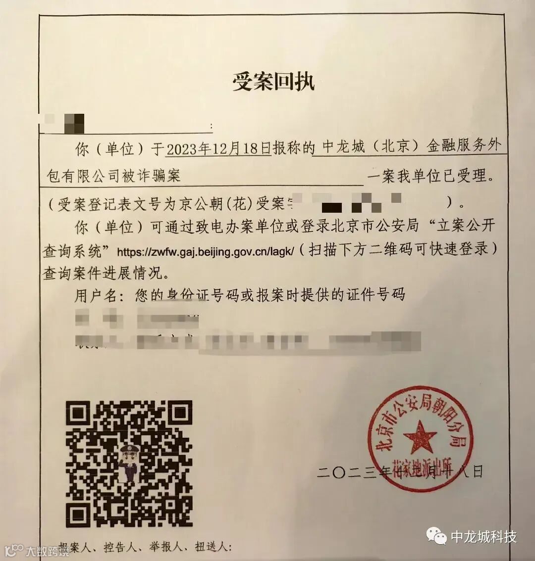 近期有网络不法分子,冒充我司中龙城金服,中龙城科技员工,实行网络电信诈骗,现我司已经掌握证据并在辖区公安机关报警立案,在此提醒广大网友用户认真核实对方贷款机构和业务员身份,在没有见面的情况下,千万不要转账!不要快递身份证件!不要寄送自己的网银U盾银行卡!