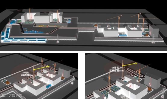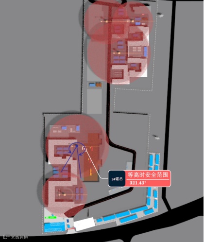 依据BIM技术对塔吊进行范围分析及碰撞模拟,有效的提高场地布置的合理性。