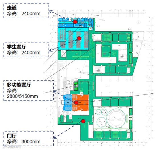 例:教室净高要求高,原设计不满足净高要求,经过BIM优化及设计确认,将结构调整为单向梁,使净高由2650mm提高至3100mm。